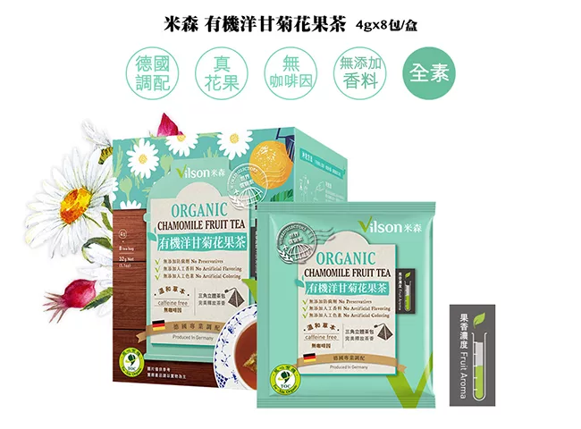 商品說明: 【米森】有機洋甘菊花果茶(4g*8包/盒)