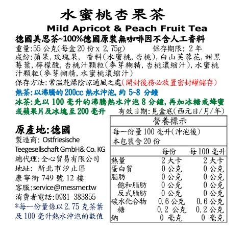 網路飲品飲料訂購-【Messmer 德國美思茶】水蜜桃杏果茶暢銷購買推薦