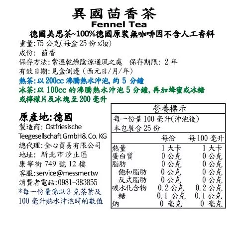 商品描述: 【Messmer 德國美思茶】異國茴香茶