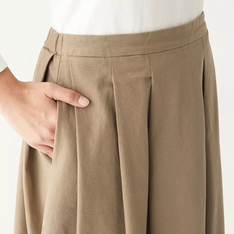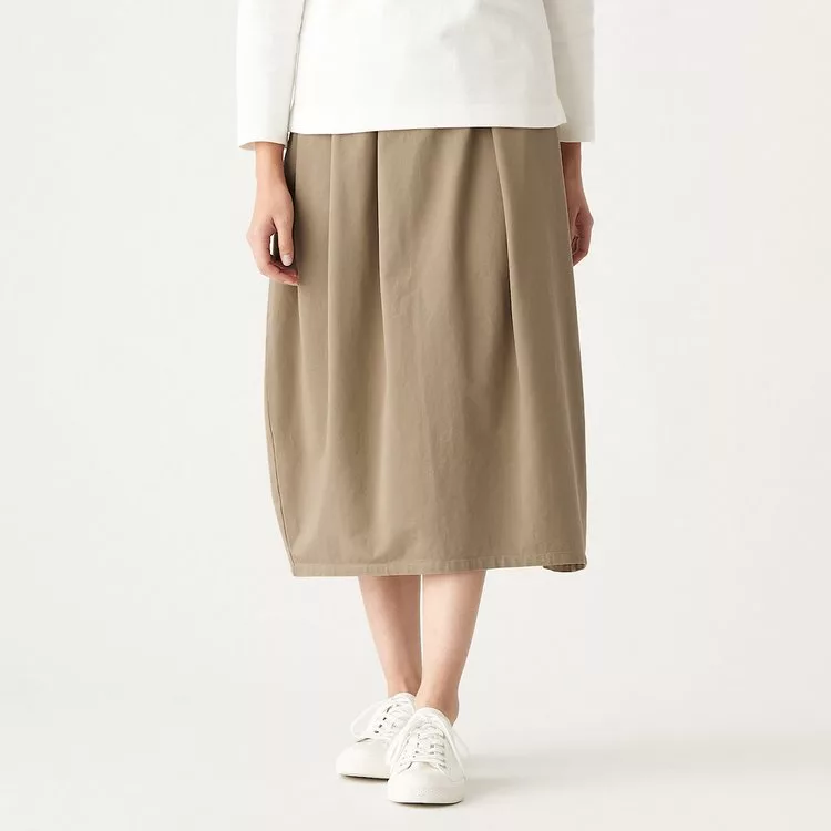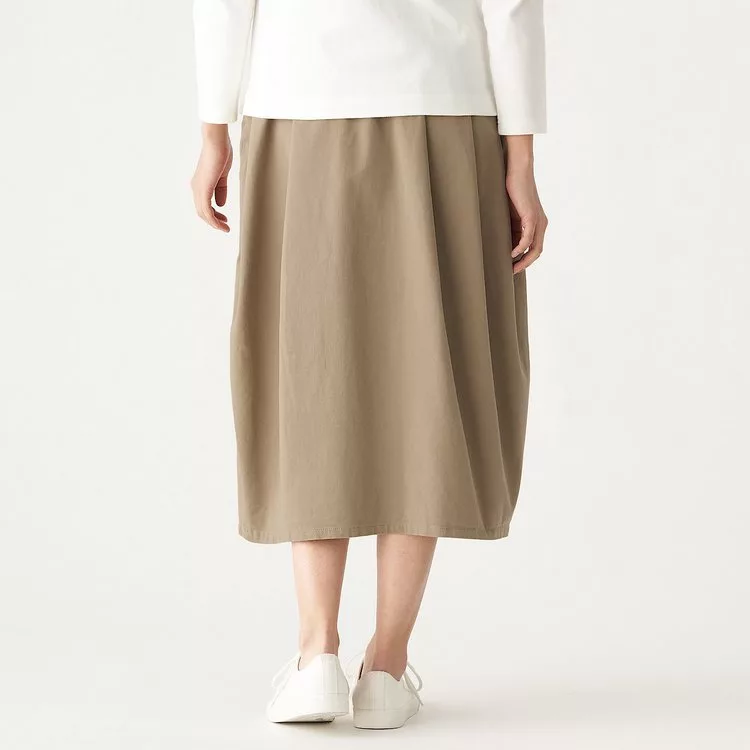商品說明: [MUJI無印良品]女有機棉混縱橫彈性綾織燈籠裙M米色