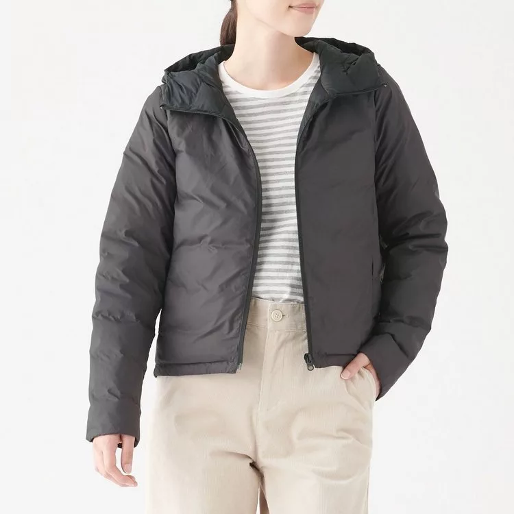 你在找博客來-[MUJI無印良品]女輕量澳洲羽絨可攜式連帽風衣外套M深灰哪裡買嗎?