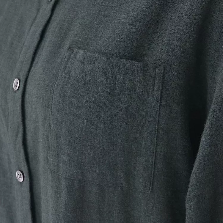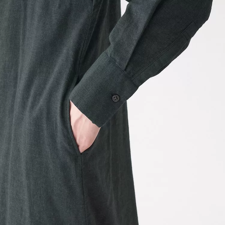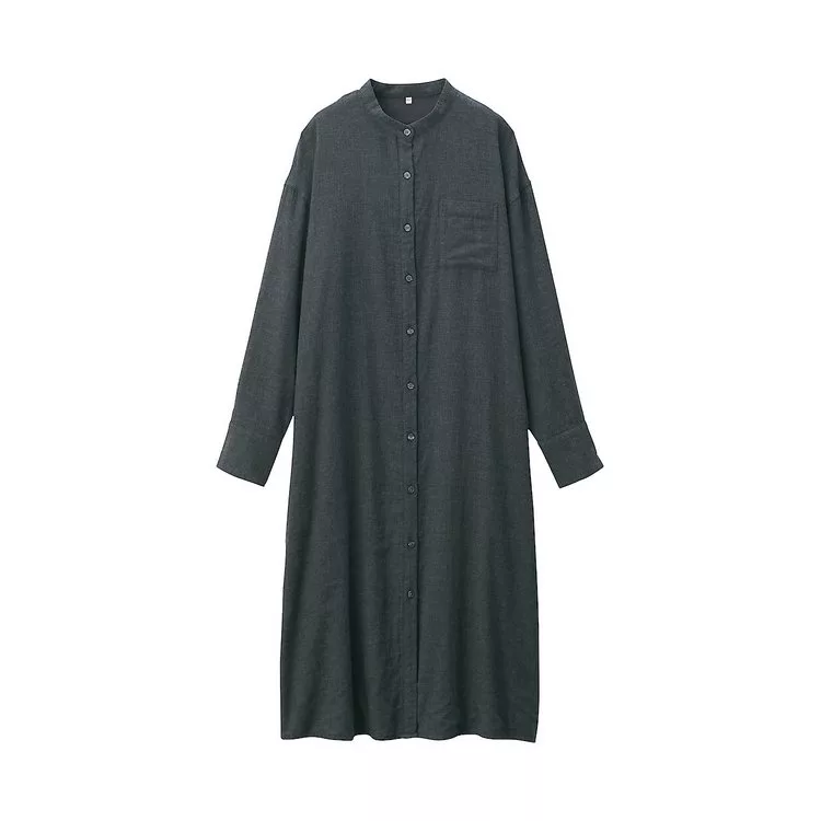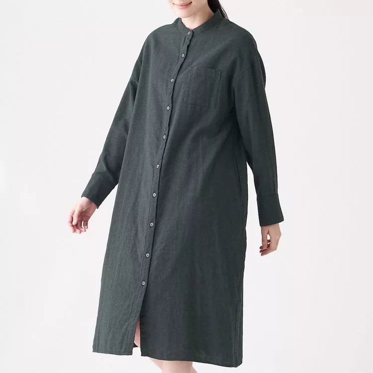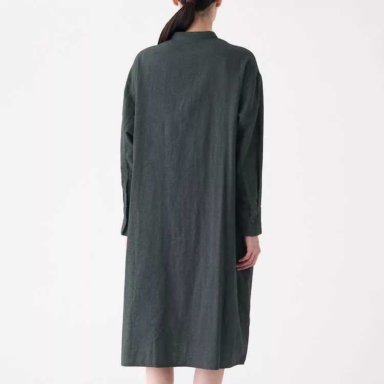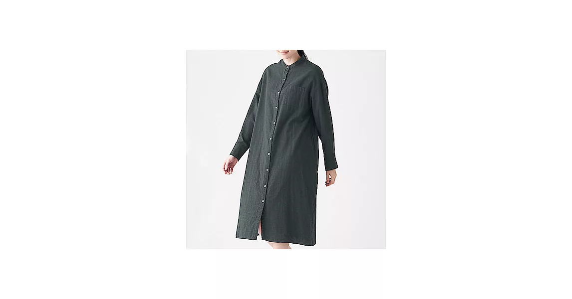 商品說明: [MUJI無印良品]女印度棉二重紗織立領洋裝M~L墨灰
