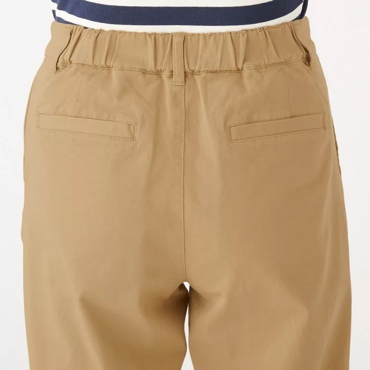 品名:女有機棉混縱橫彈性綾織舒適寬擺褲米色S