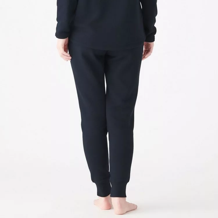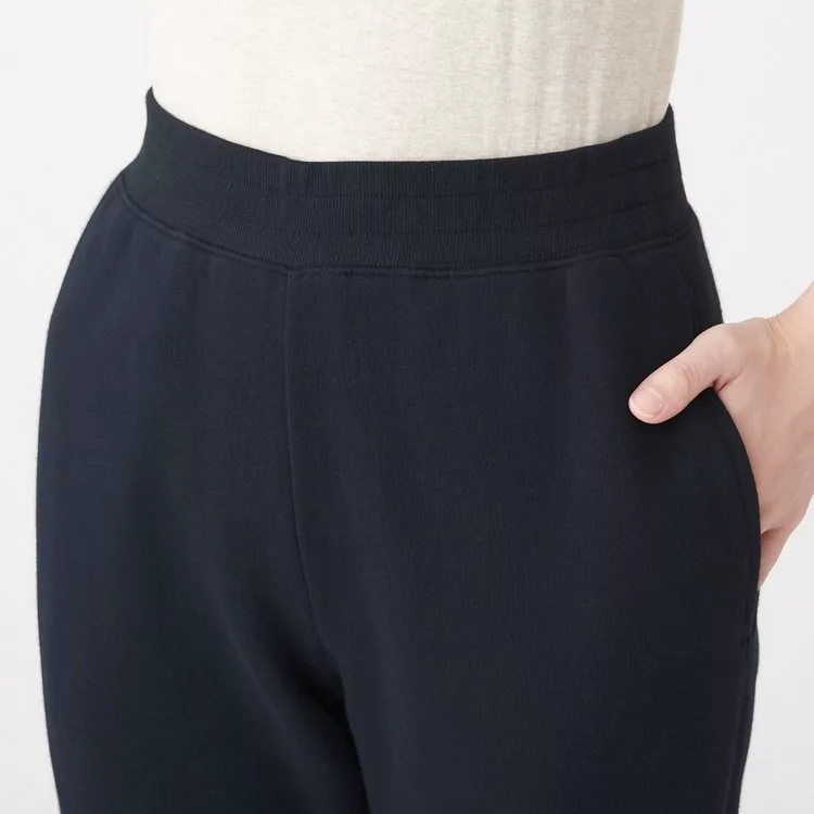 商品說明: [MUJI無印良品]女有機棉混彈性裏毛螺紋縮口長褲S暗藍