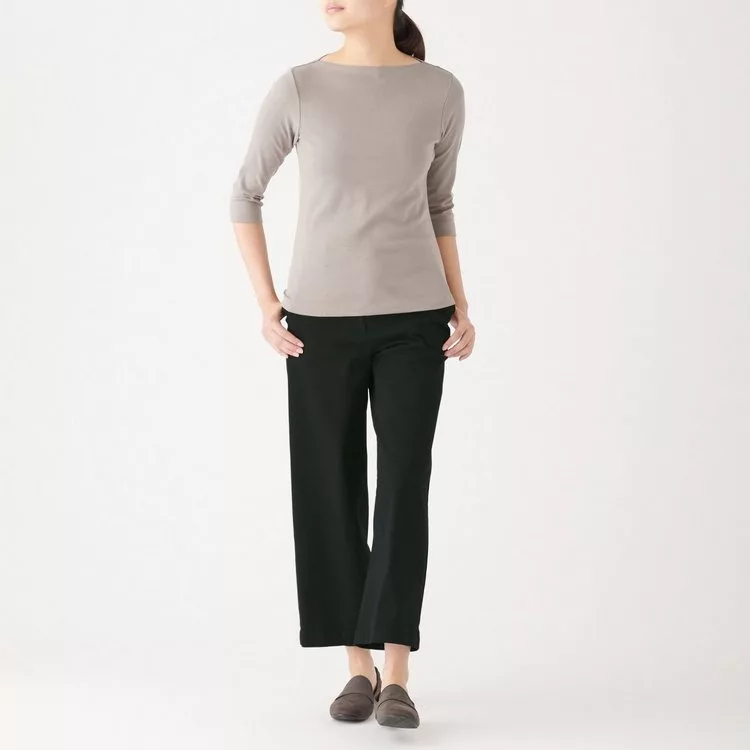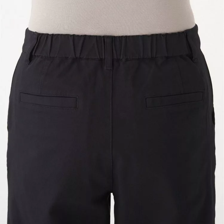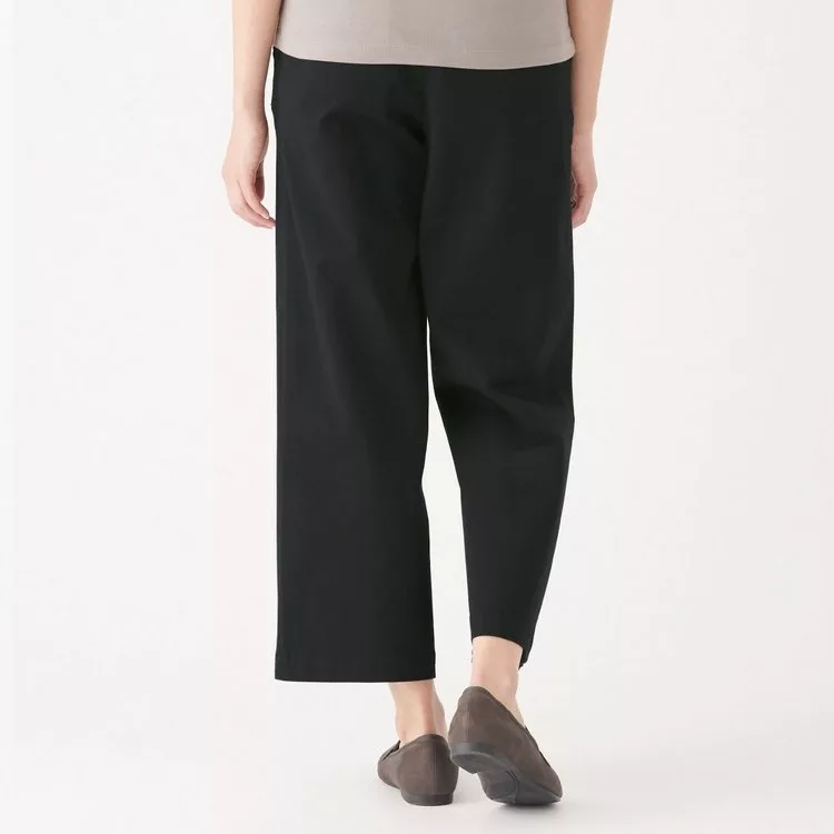 商品描述: [MUJI無印良品]女有機棉混縱橫彈性綾織舒適寬擺褲S深藍