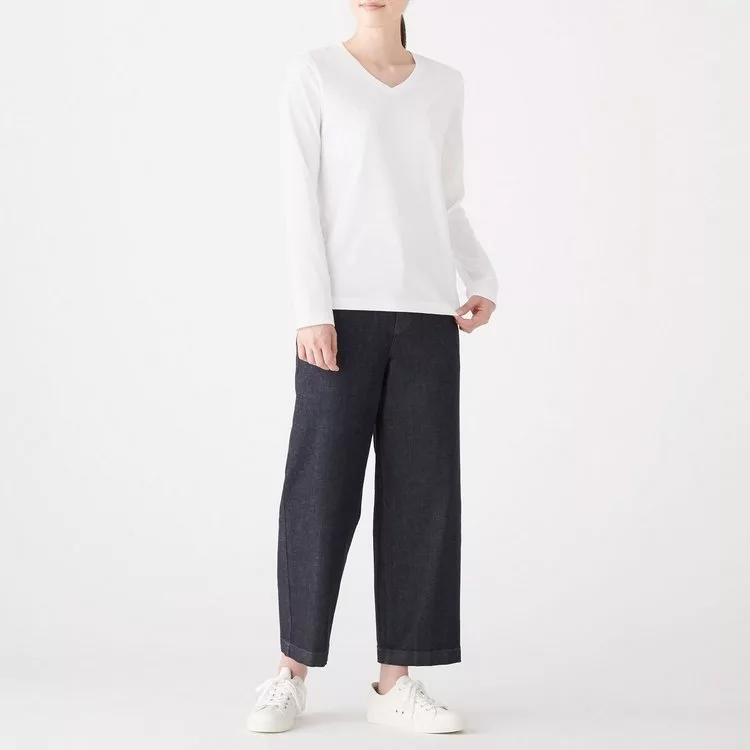 商品說明: [MUJI無印良品]女印度棉天竺V領長袖T恤S白色