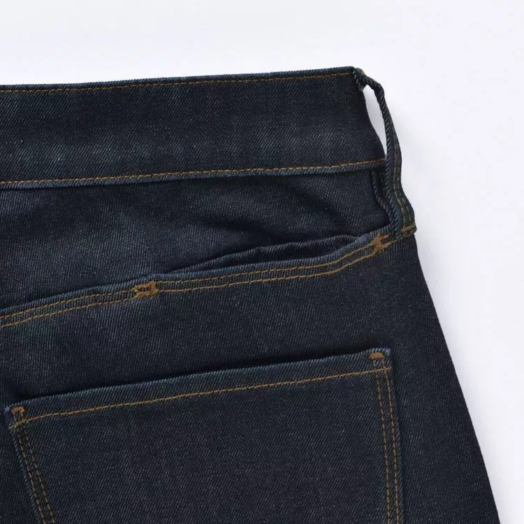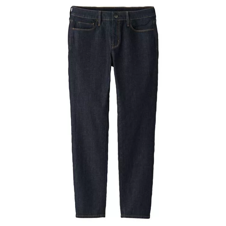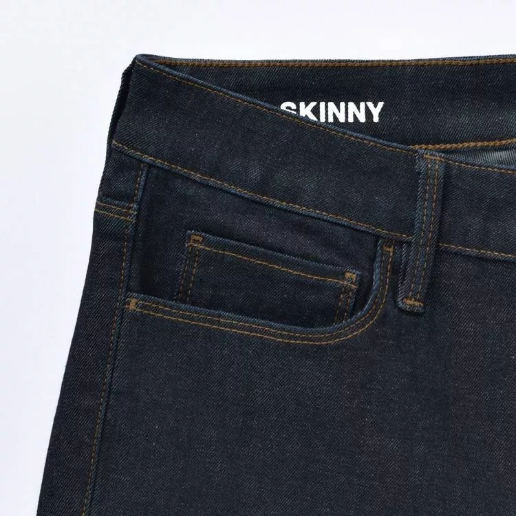品名:女有機棉混縱橫彈性丹寧窄版九分褲暗藍22吋