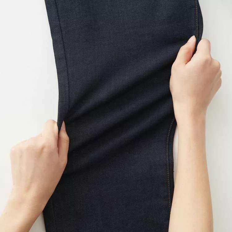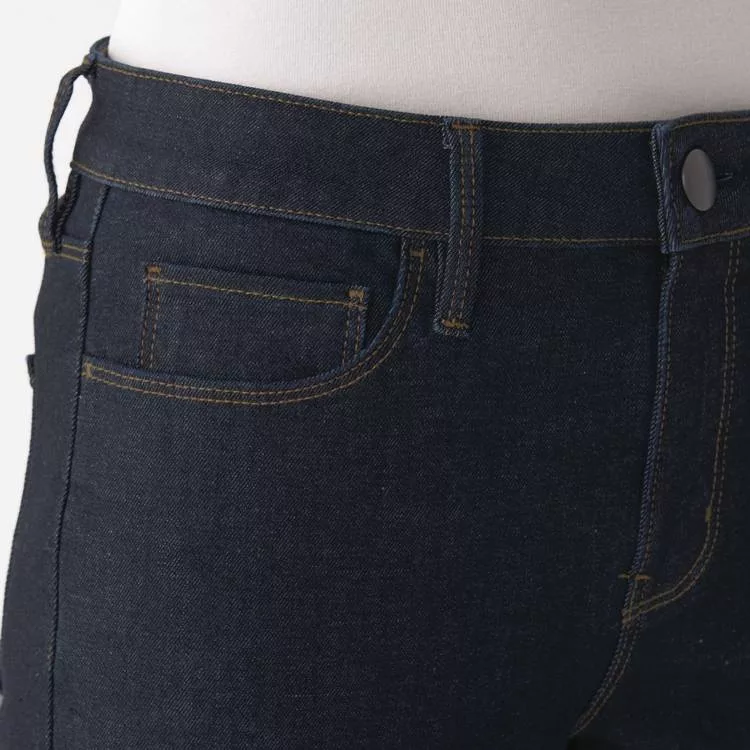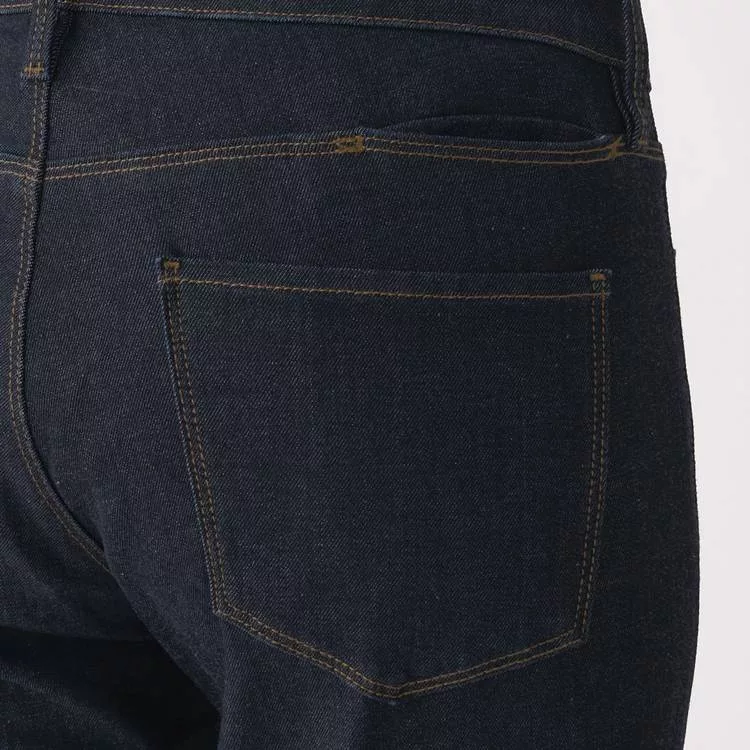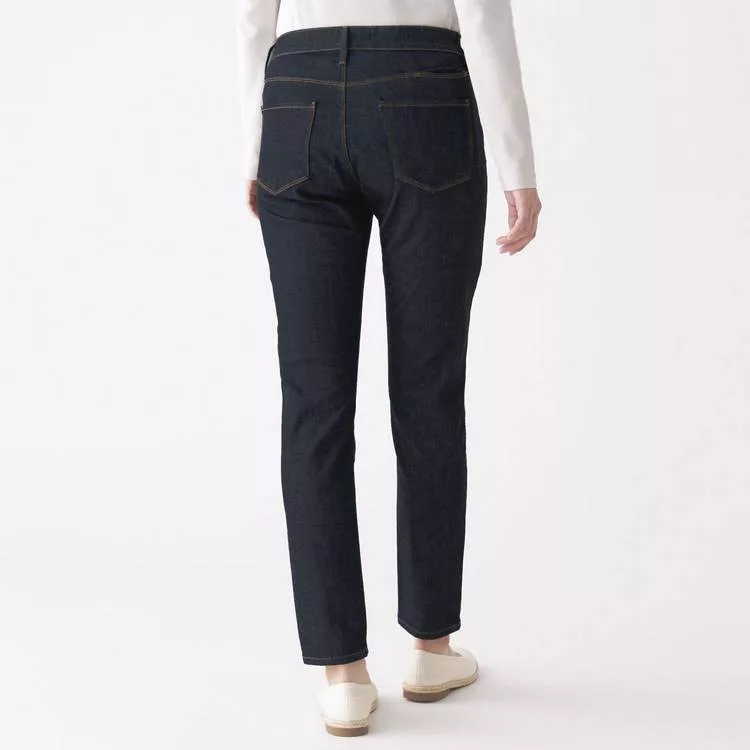 商品說明: [MUJI無印良品]女有機棉混縱橫彈性丹寧窄版九分褲暗藍