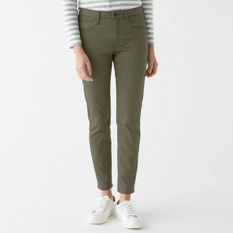 商品說明: [MUJI無印良品]女有機棉混彈性窄版九分褲卡其