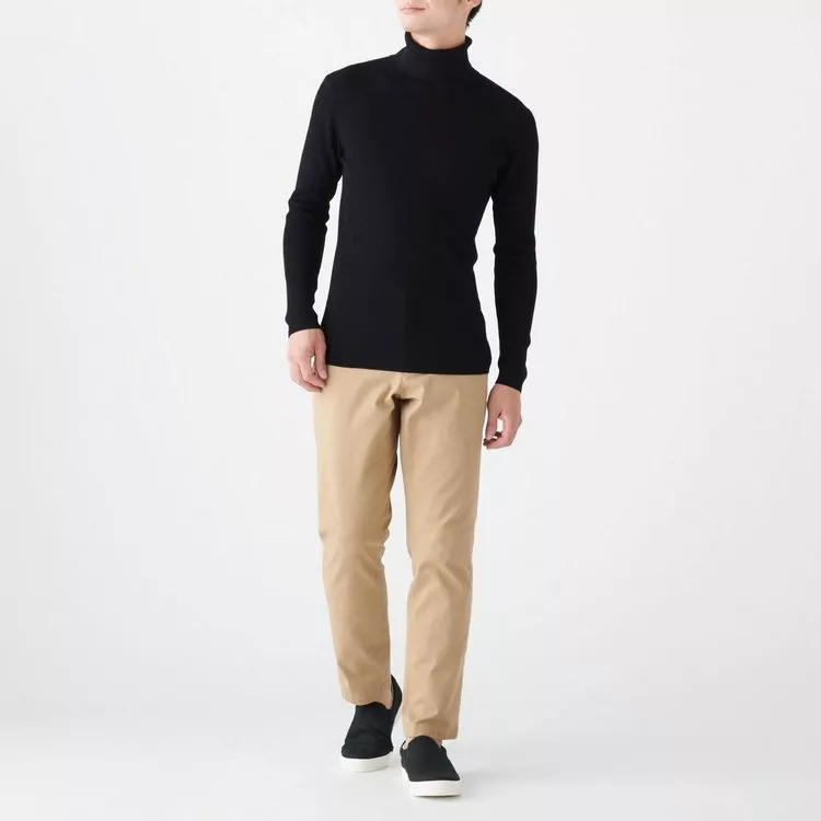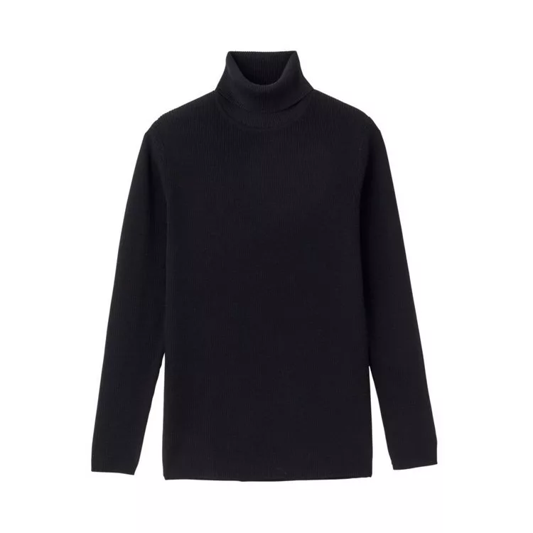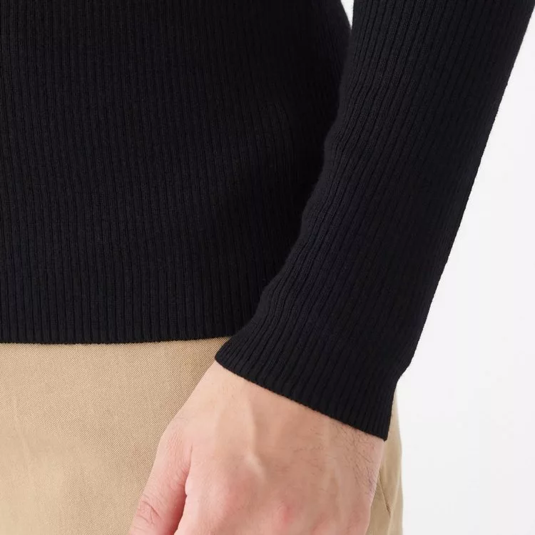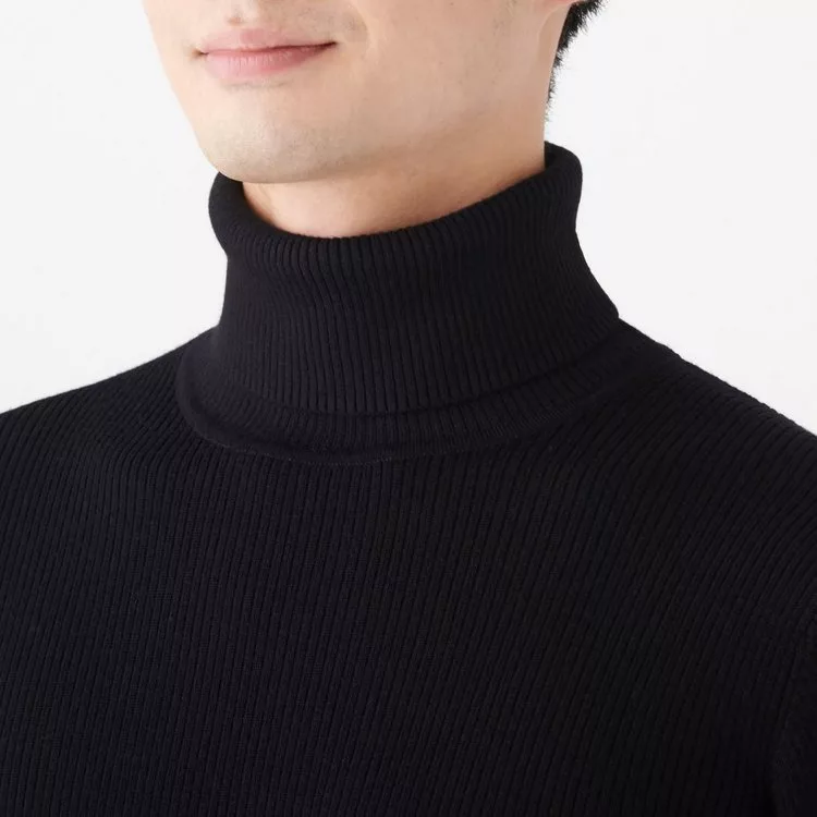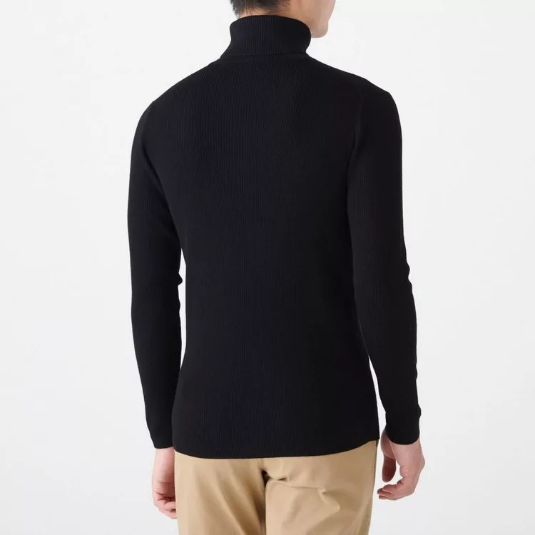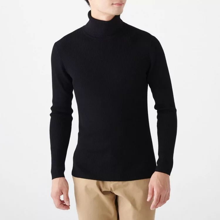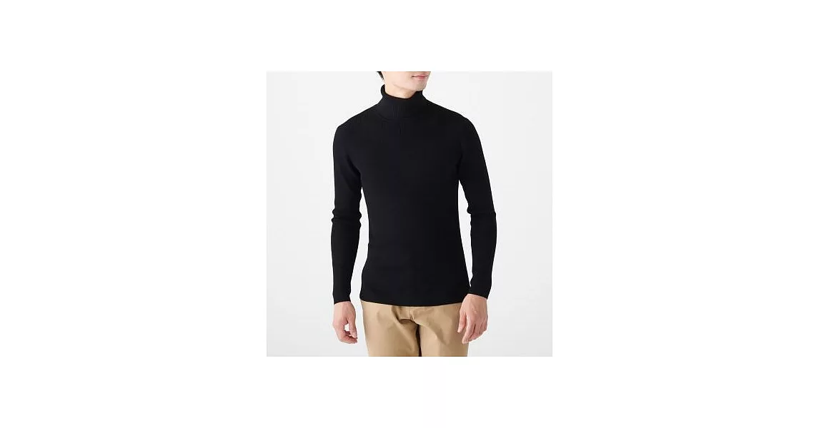 商品描述: [MUJI無印良品]男不易刺癢羊毛螺紋高領針織衫L黑色
