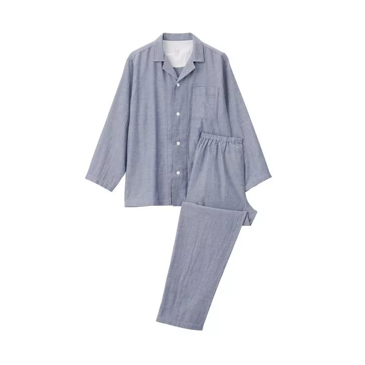 商品描述: [MUJI無印良品]男有機棉無側縫二重紗織家居睡衣M深藍