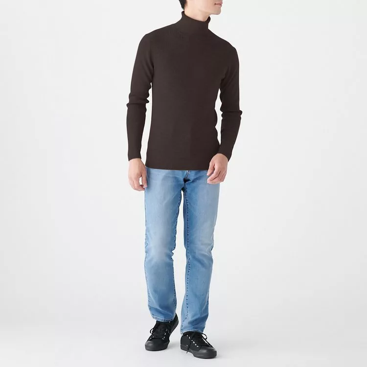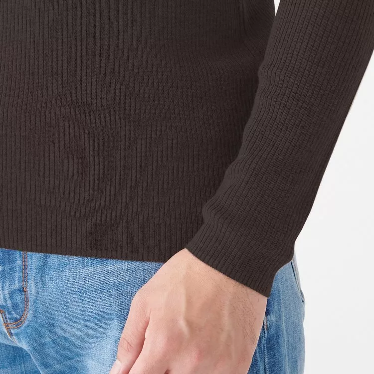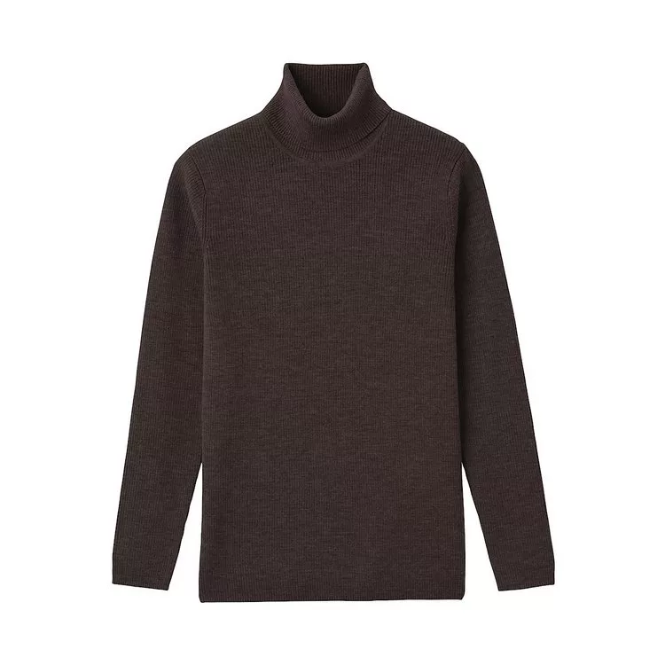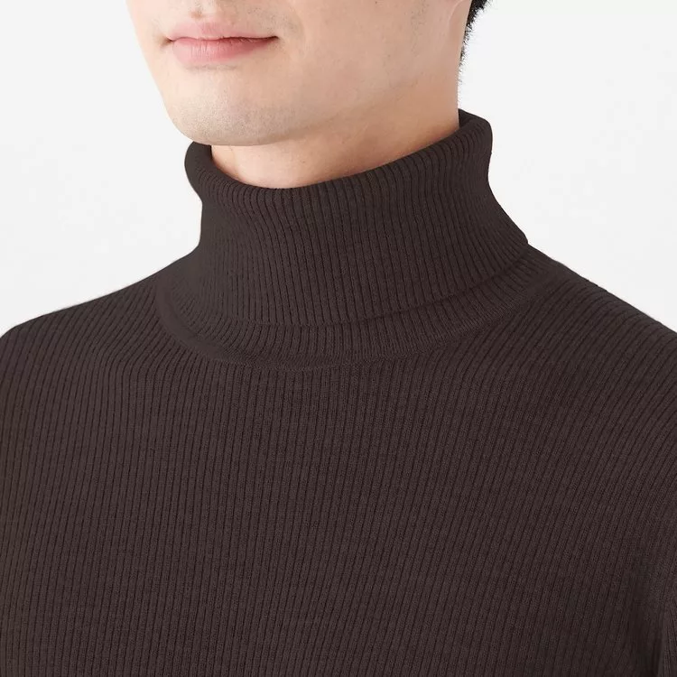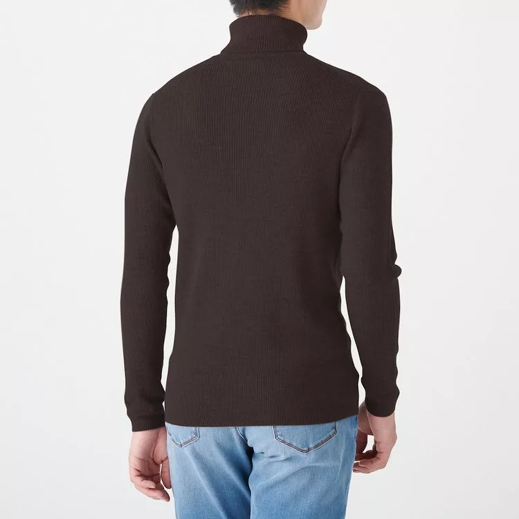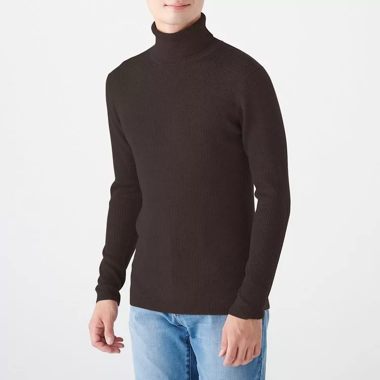 商品描述: [MUJI無印良品]男不易刺癢羊毛螺紋高領針織衫M棕色