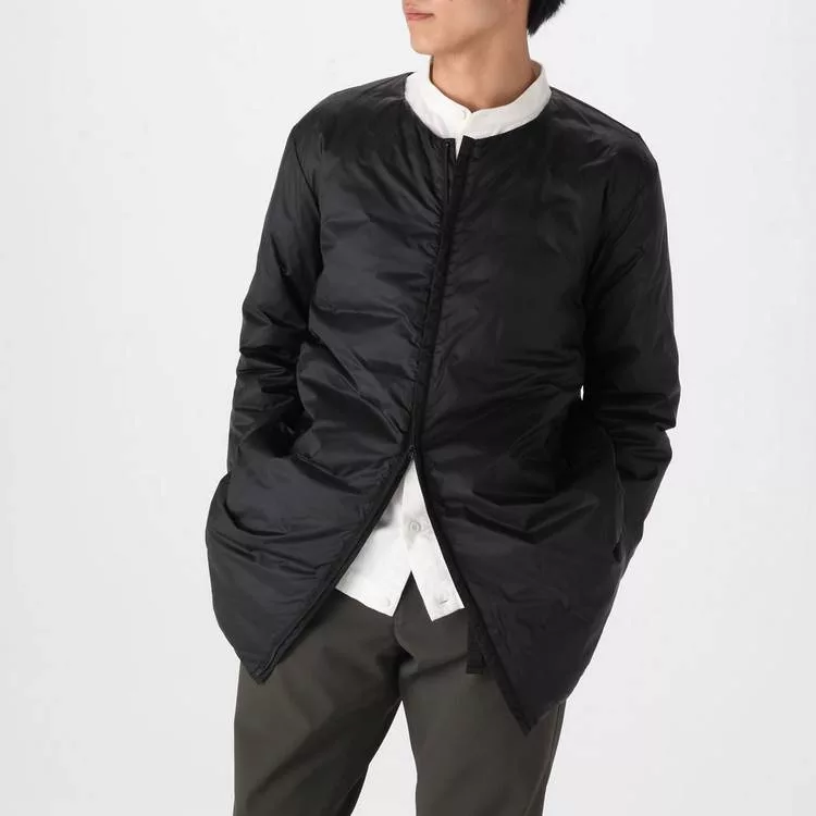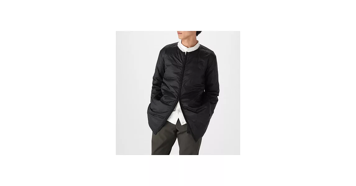 品名:男輕量澳洲羽絨可攜式無領大衣黑色S