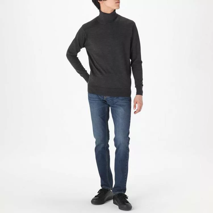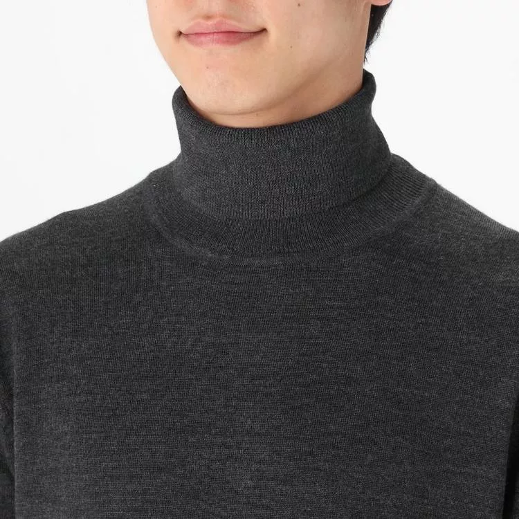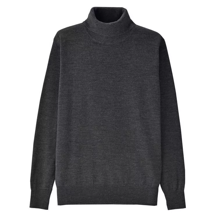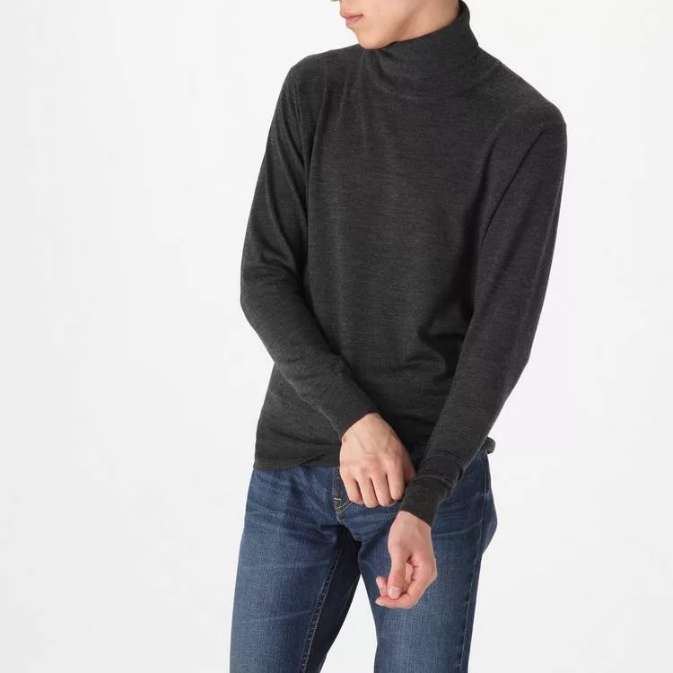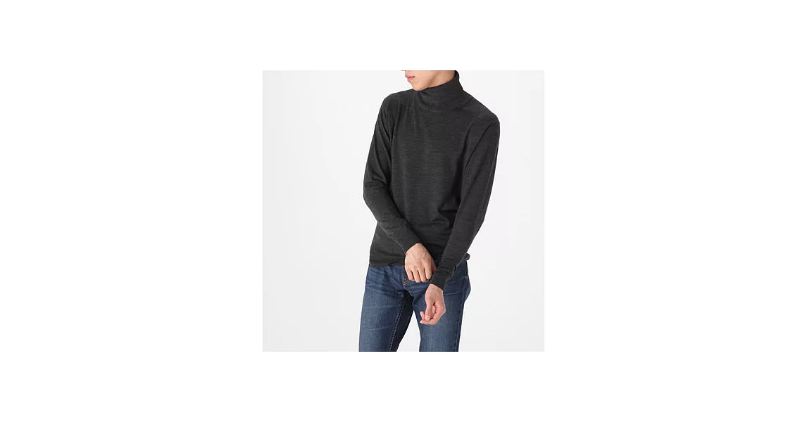 商品描述: [MUJI無印良品]男不易刺癢羊毛天竺高領毛衣S墨灰