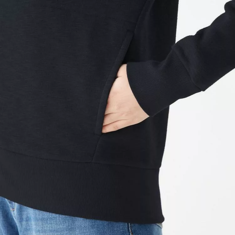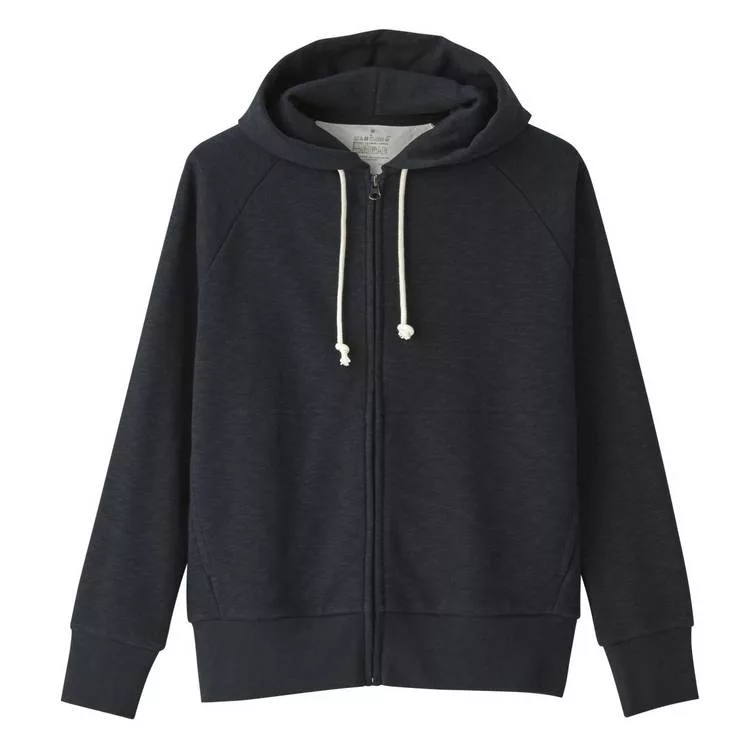 商品描述: [MUJI無印良品]女棉混節紗裏毛拉鍊連帽外套S暗藍