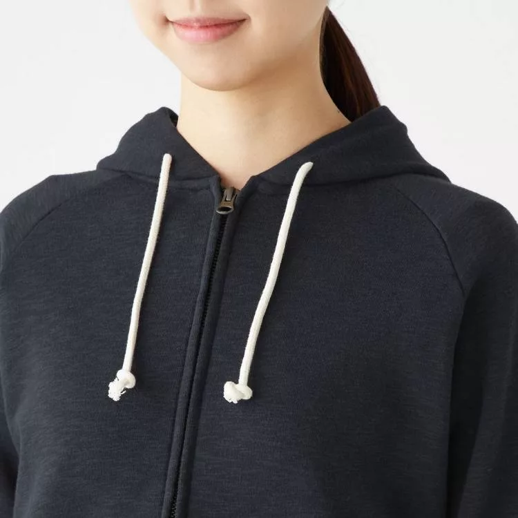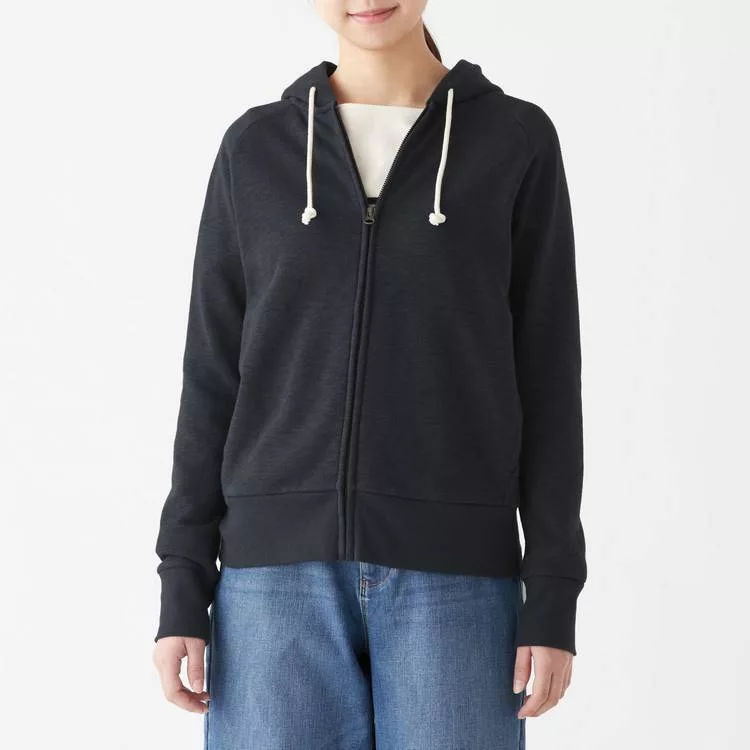 商品說明: [MUJI無印良品]女棉混節紗裏毛拉鍊連帽外套S暗藍