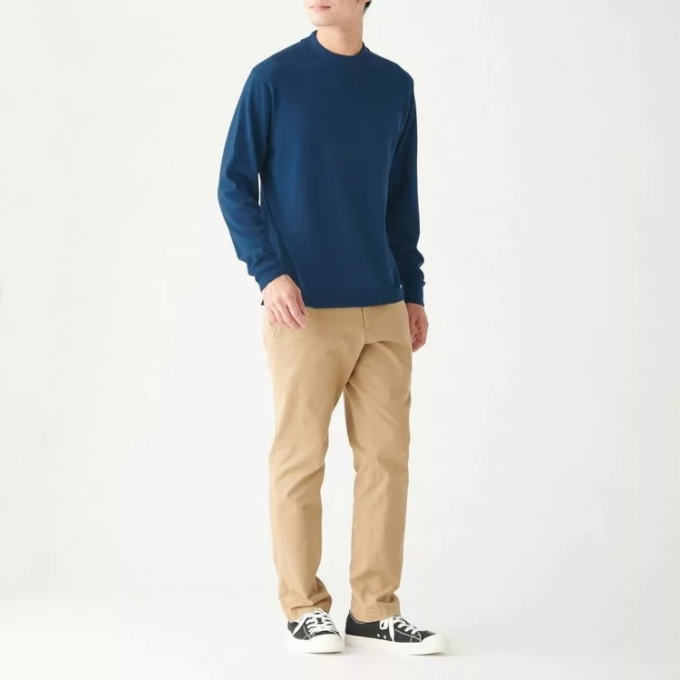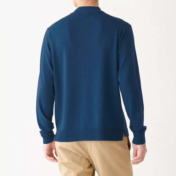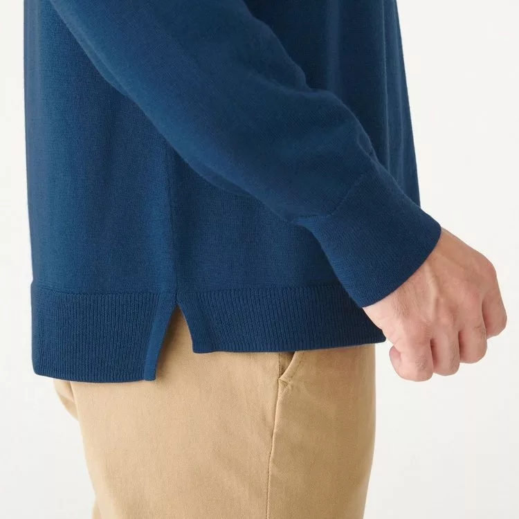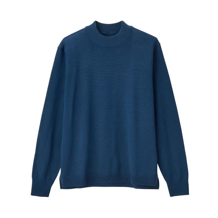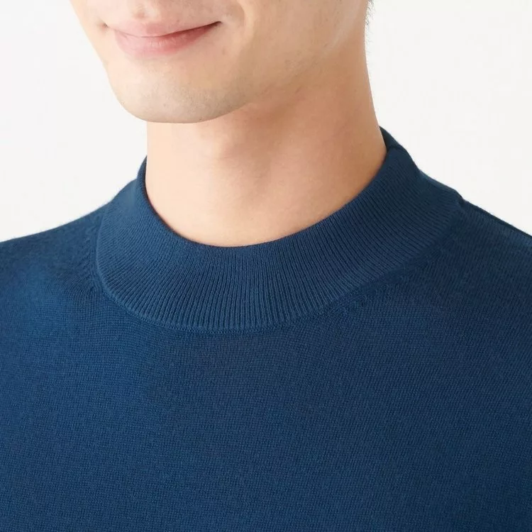 商品描述: [MUJI無印良品]男不易刺癢羊毛天竺方型剪裁短領針織衫S藍色