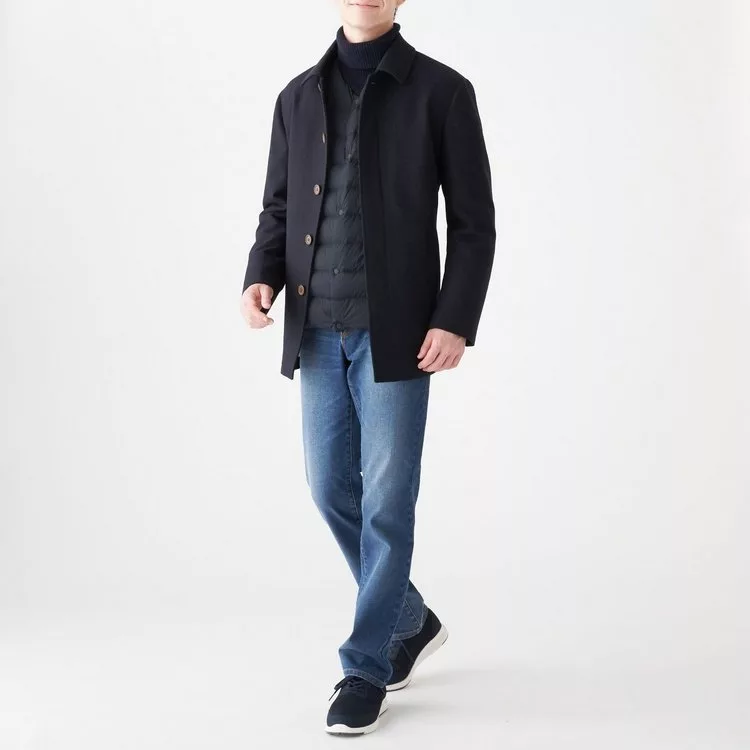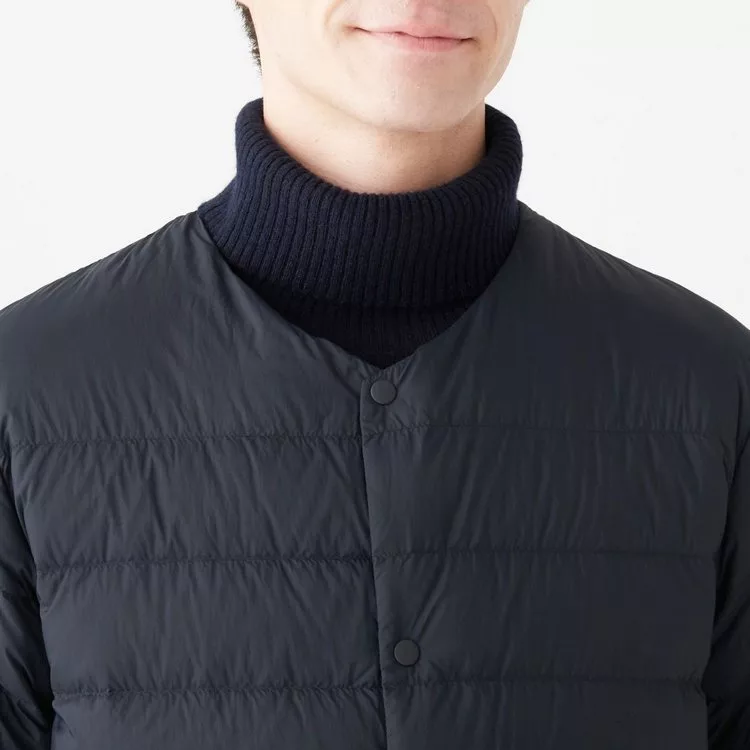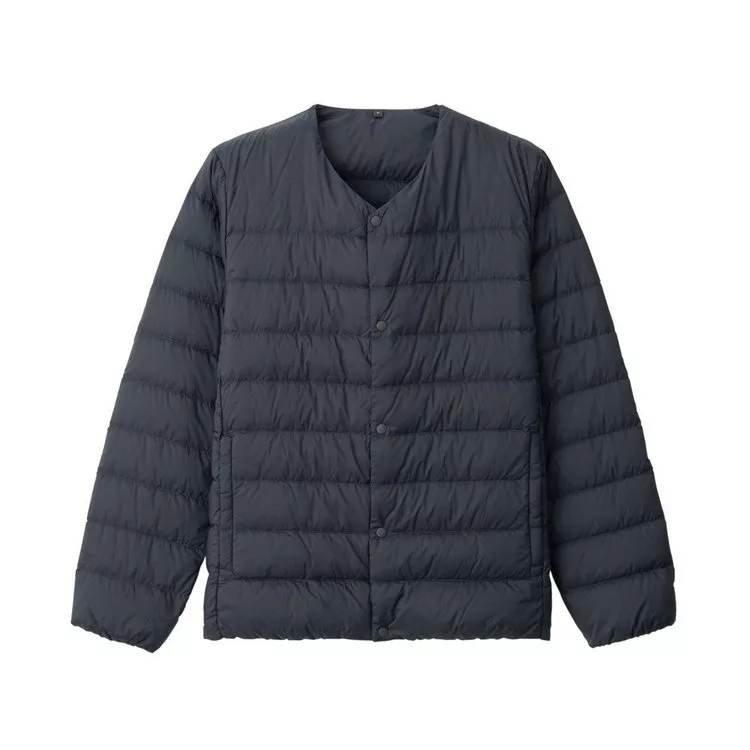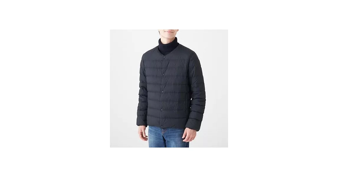 商品描述: [MUJI無印良品]男輕量澳洲羽絨可攜式無領外套S暗藍