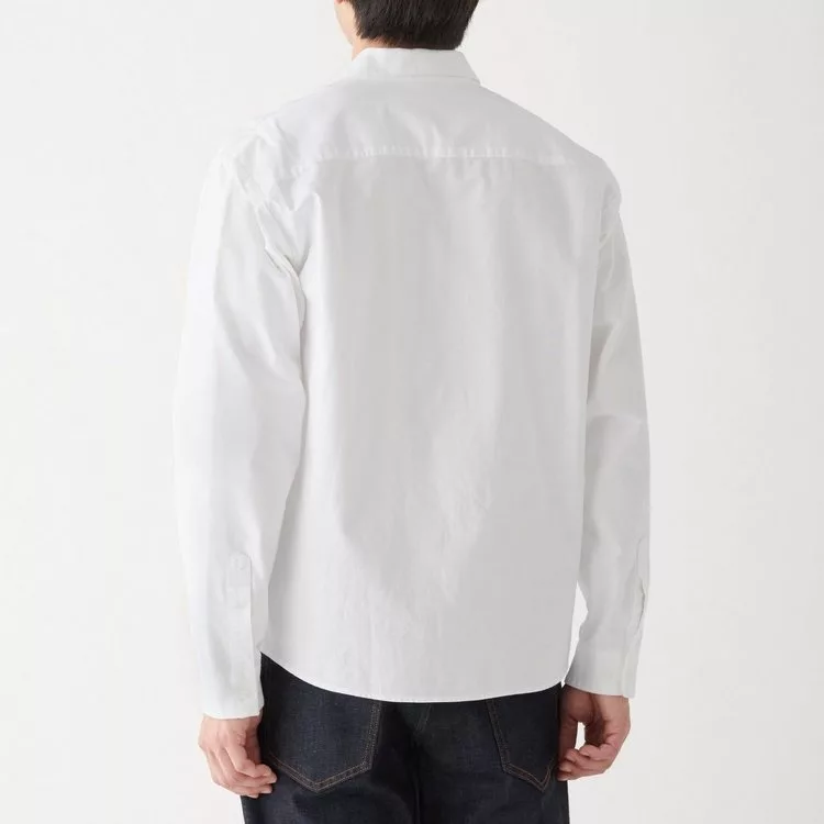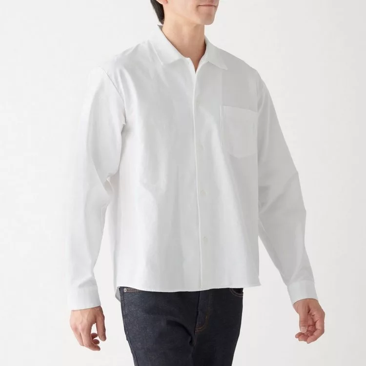 商品說明: [MUJI無印良品]男新疆棉牛津布方型剪裁襯衫S~M白色