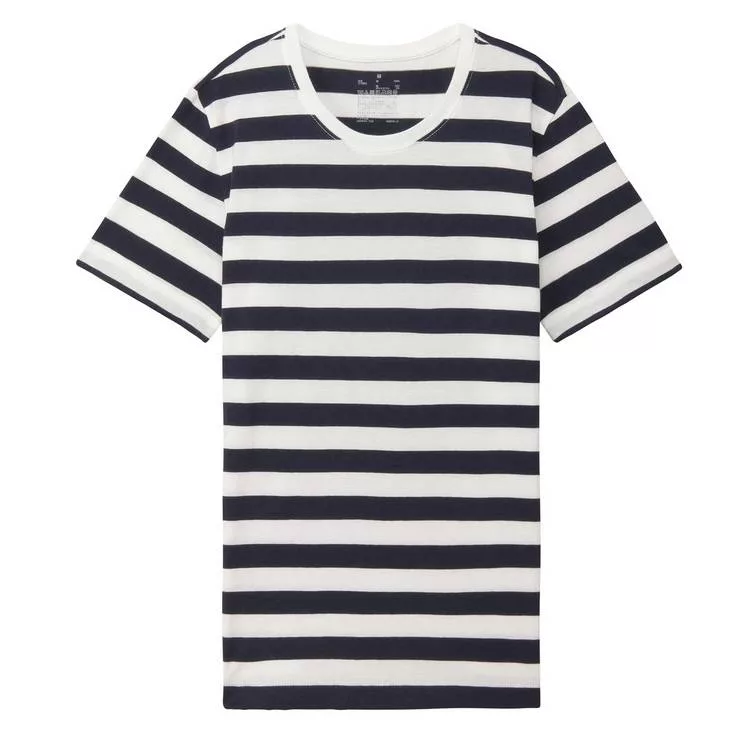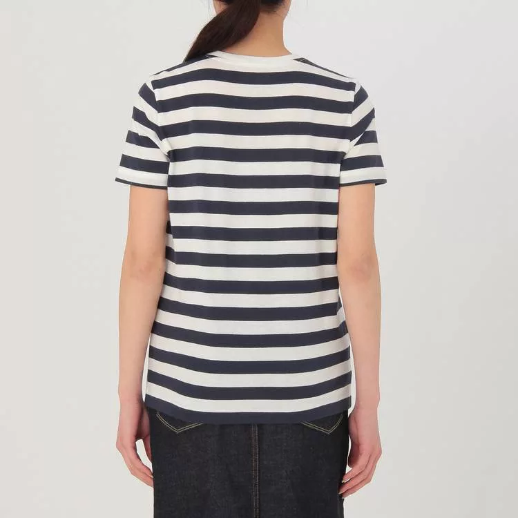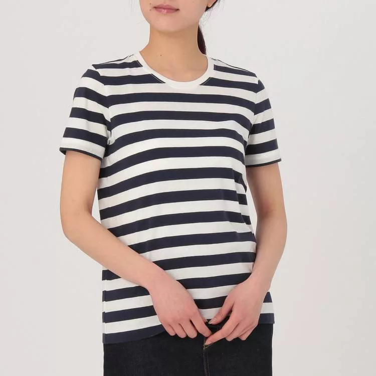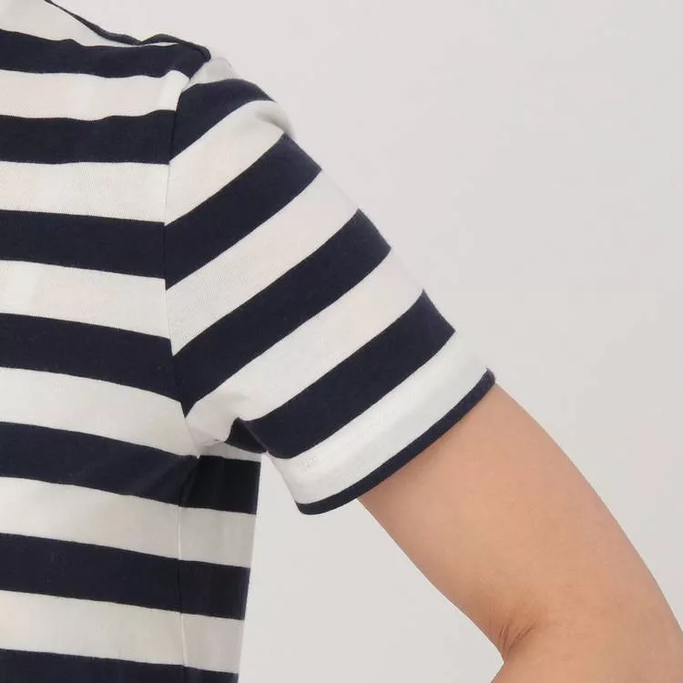 品名:女有機棉圓領橫紋短袖T恤暗藍橫紋XS