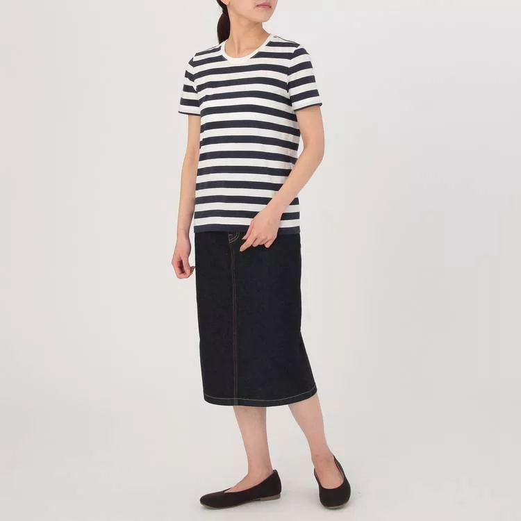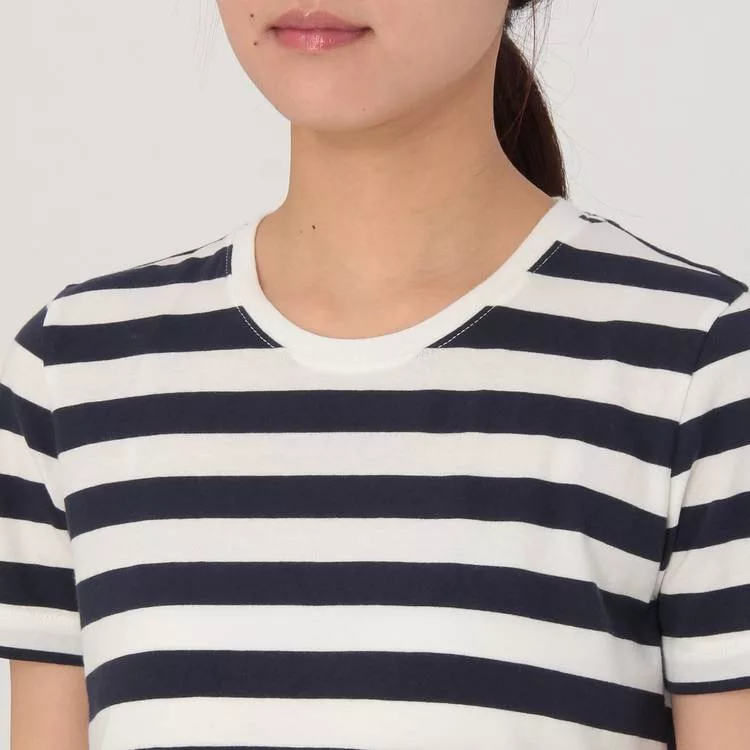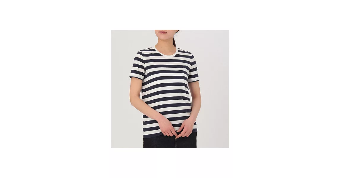 商品描述: [MUJI無印良品]女有機棉圓領橫紋短袖T恤XS暗藍橫紋