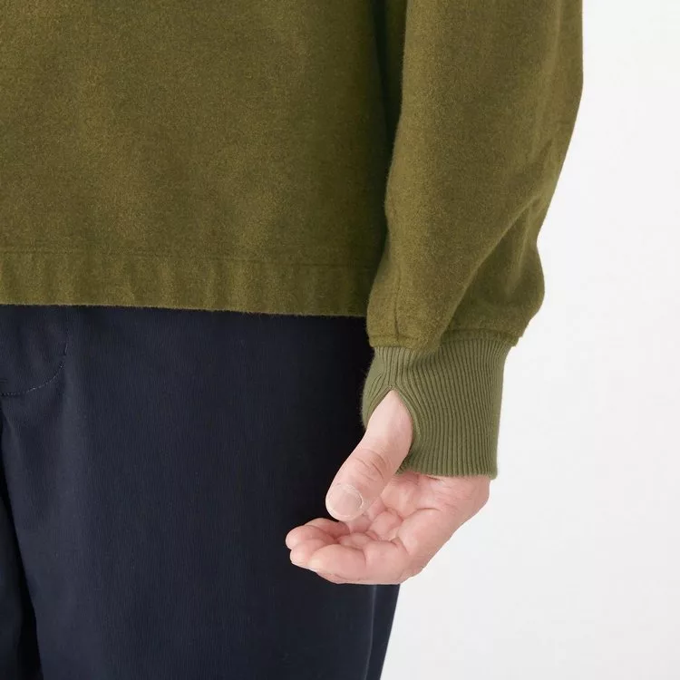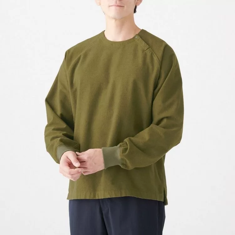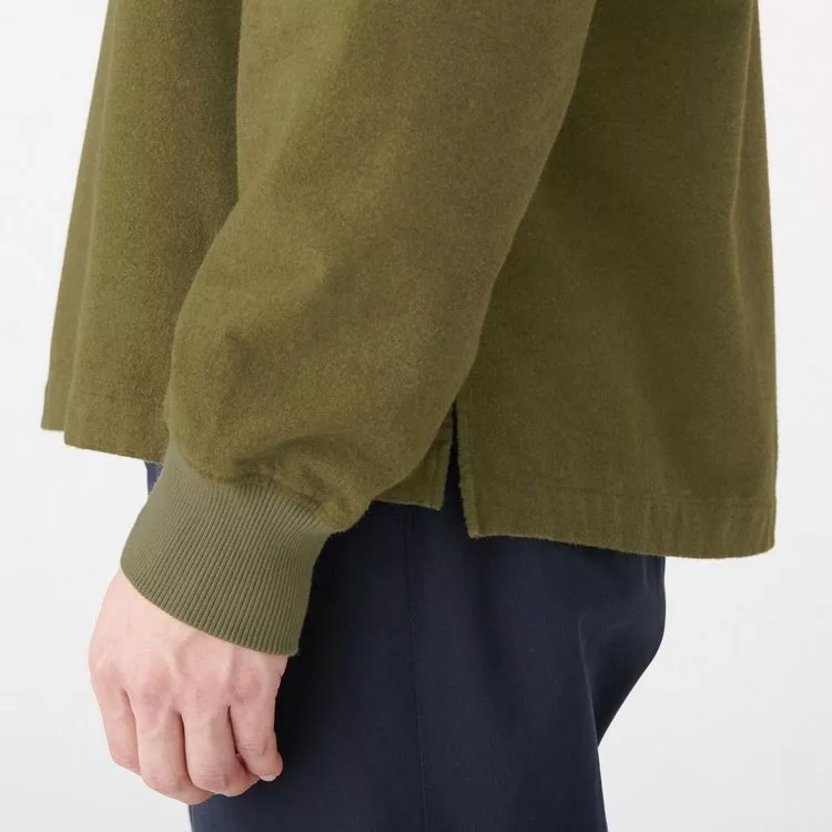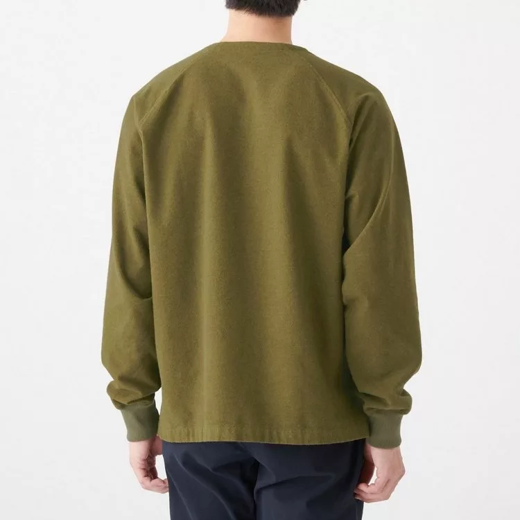 商品說明: [MUJI無印良品]男新疆棉法蘭絨螺紋袖口套衫XL卡其綠