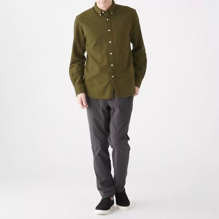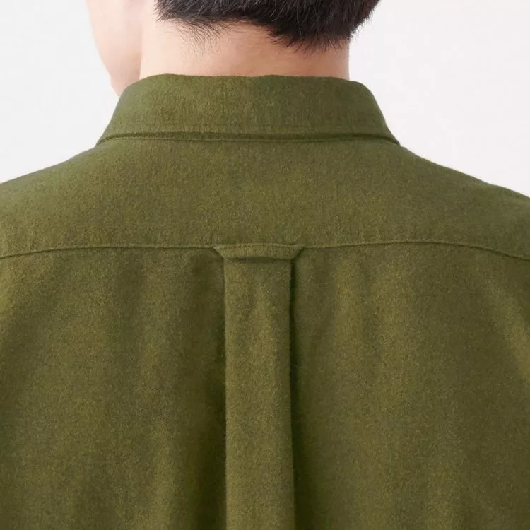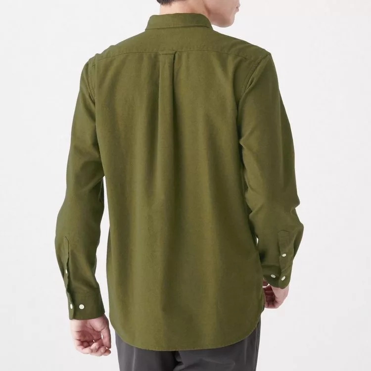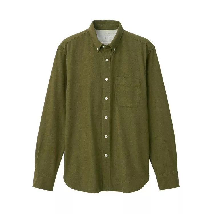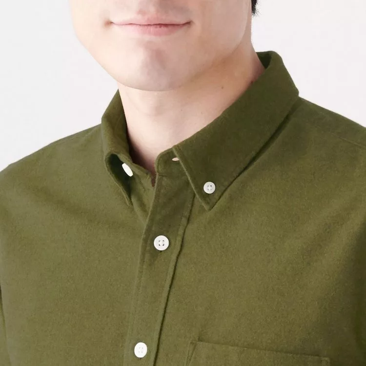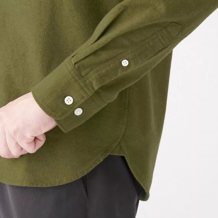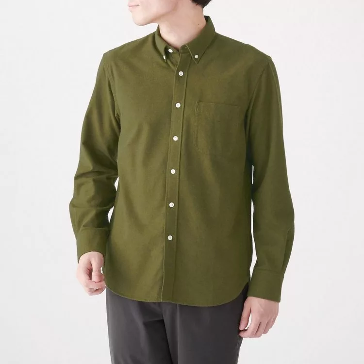 商品說明: [MUJI無印良品]男新疆棉法蘭絨扣領襯衫XS卡其綠