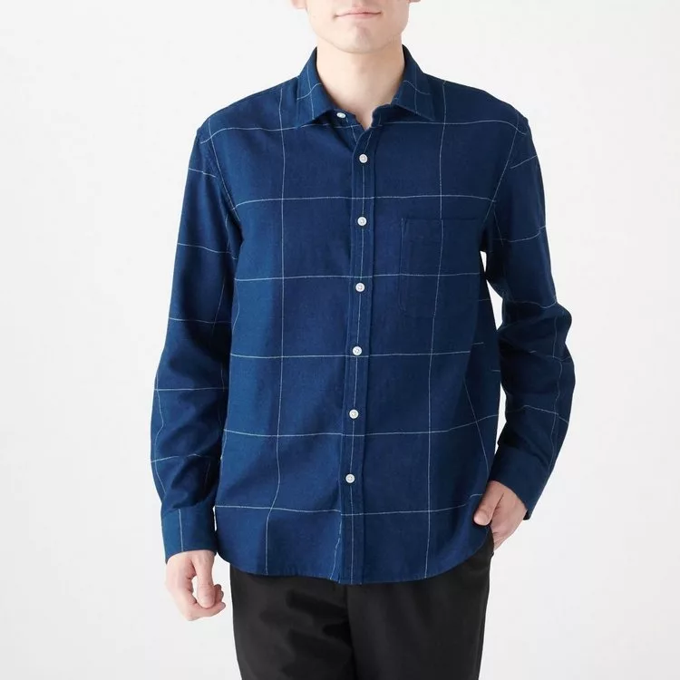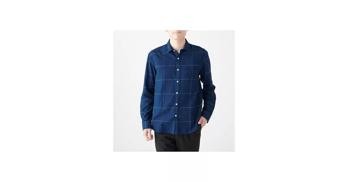商品描述: [MUJI無印良品]男印度棉法蘭絨藍染格紋襯衫XS靛藍
